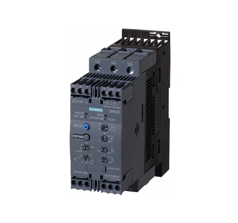 SIRIUS 3RW40 is the star among our standard soft starters. Thanks to its innovative control method, it is not just the only 2-phase-controlled soft starter in the world for use in the power range up to 250 kW (at 400V) – respectively 300 hp (at 460V) – because of its especially compact design, it ensures a space-saving, clear layout in the control cabinet. It is therefore more than a mere functionally expanded addition to our 2-phase-controlled series of SIRIUS 3RW30/31 soft starters.